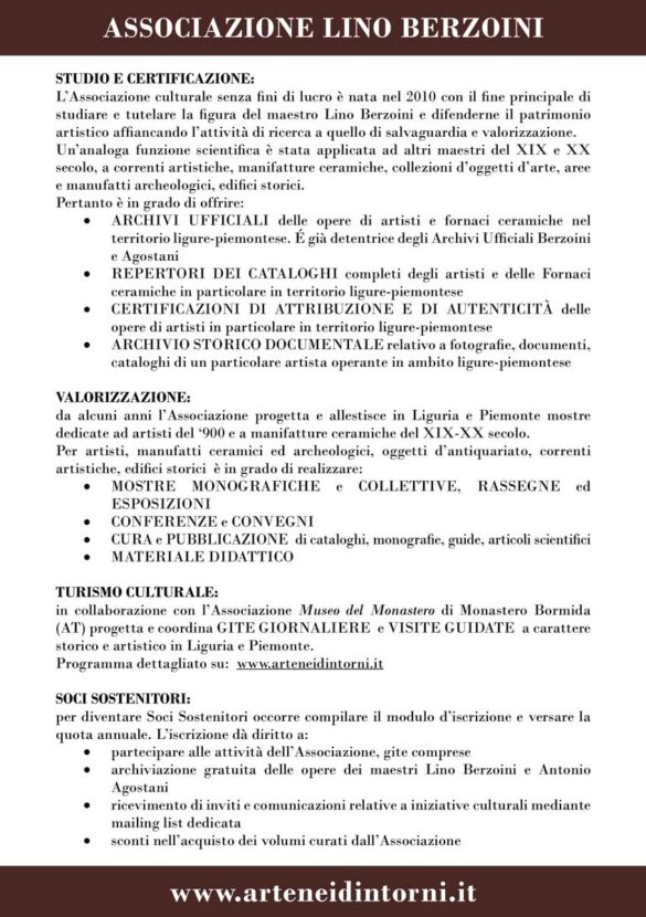 “ASSOCIAZIONE LINO BERZOINI, Centro per lo studio e la promozione dell’Arte”.